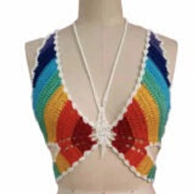Top de crochet de mariposa arcoíris