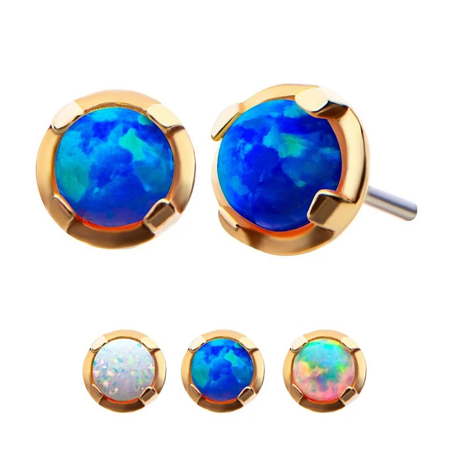Top de ópalo con juego puntas sin rosca en oro amarillo 14 quilates