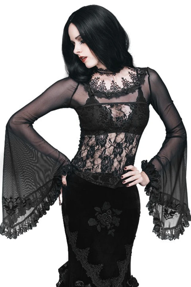 Top Gótico De Encaje Malla Con Trompeta Slvs