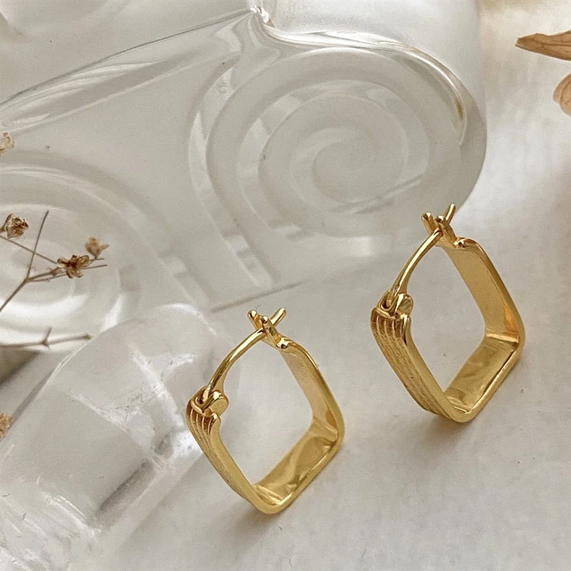 Rectangle Hoop Earrings in Solid 10K Gold