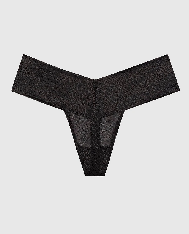 No Show Invisible High Waist Thong Panty Tuxedo Black