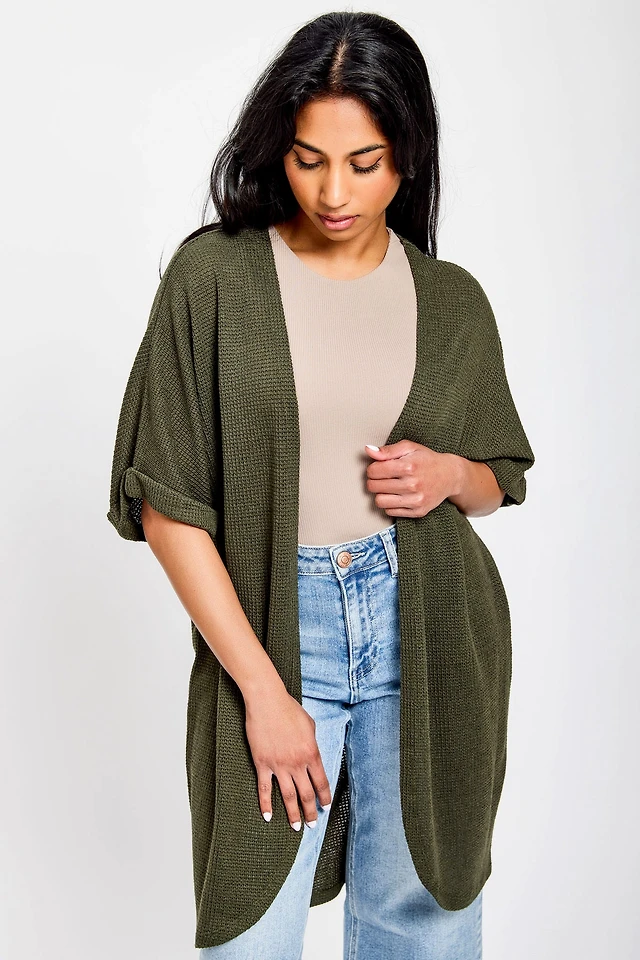 Lightweight 3/4 Sleeve Waffle Knit Cardigan