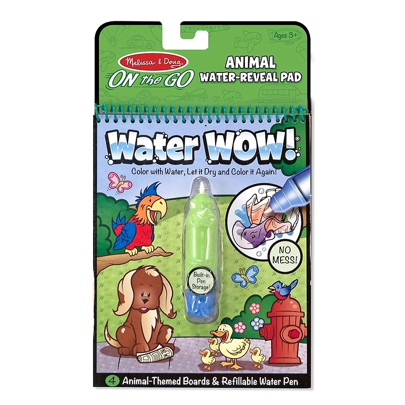 The set includes four reusable pages and a refillable water pen. The chunky-sized water pen is easy for kids to hold, ideal for travel activity Player Information Age of Players: 3 to 6 YearsNumber of Players: 1 to 1Skill Level: BeginnerTime to Learn in Mins: 5Time to Play in Mins: 20 Small Piece Choking Hazard: Yes Battery Details:Batteries Included: Not RequiredBattery Details: 0 NAAdditional Batteries: 0 NAAdditional Information:Publisher: Melissa and Doug Item ID: 681147000131 Packaging Dimensions: 10" X 6" x 1.5" Language: Country of Origin: UN
