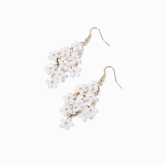 Flower Petal Station Chain Drop Earrings in 14K Gold