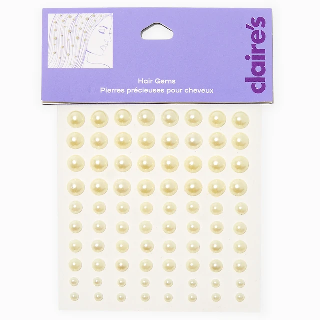 White Pearl Hair Gems - 80 Pack