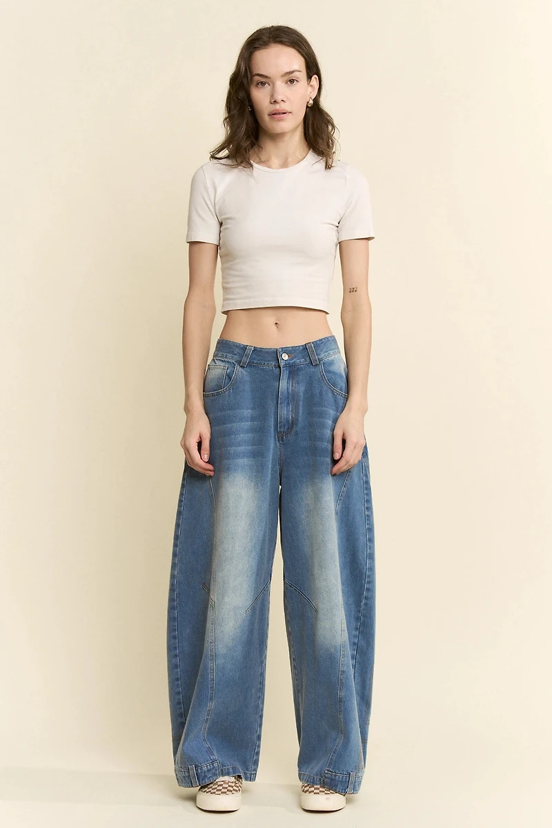 Wide Leg Panel Seam Denim Jeans
