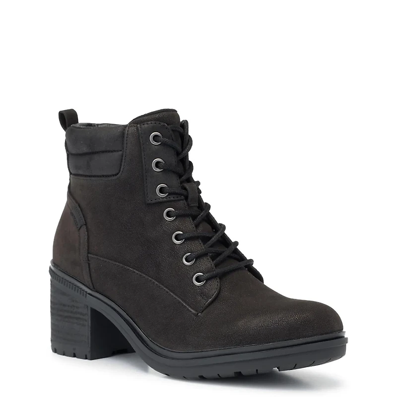 - Synthetic upperLace-up closureRound toePadded collar detailTextile liningLightly cushioned synthetic footbedComfort-focused designSynthetic midsoleApproximately 2.5 inch heel heightDurable rubber lug outsole