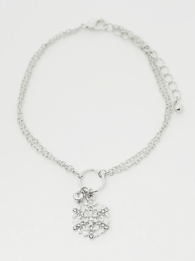 Diamond Accent Snowflake Charm Bracelet in Sterling Silver - 7.5"