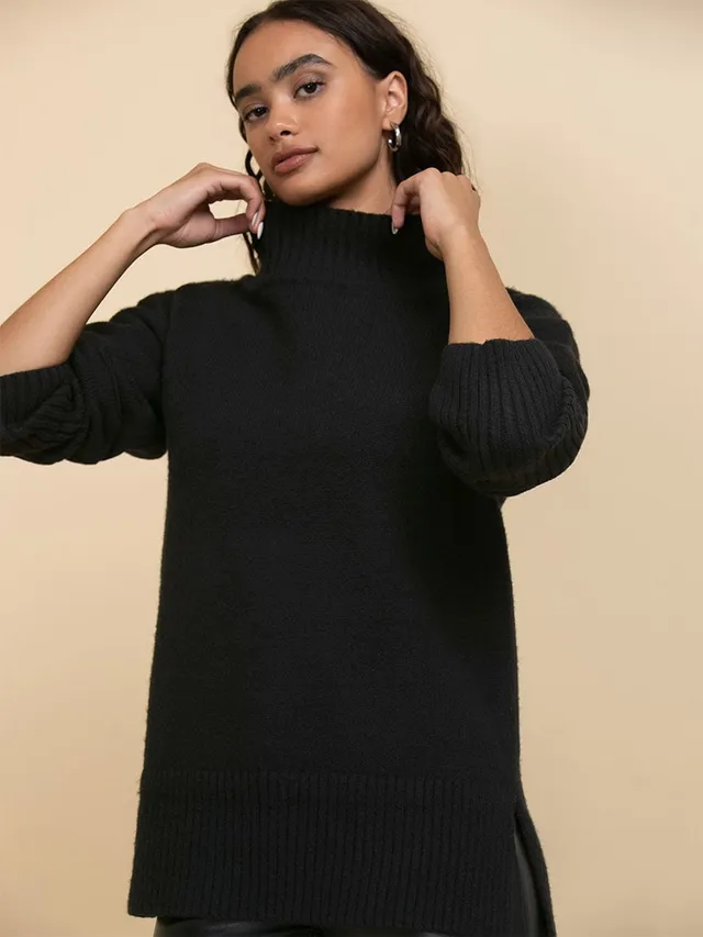 Knit Mock Neck Tunic Top & Straight-Leg Jeans