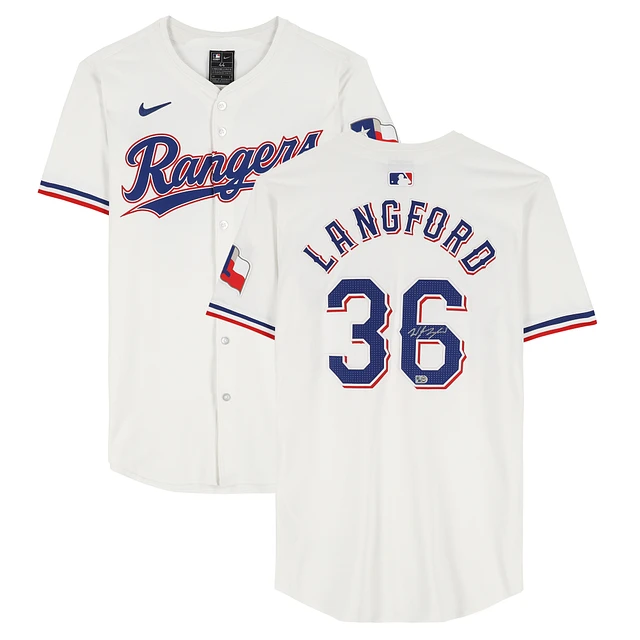 Wyatt Langford Texas Rangers Autographed White Nike Replica Jersey