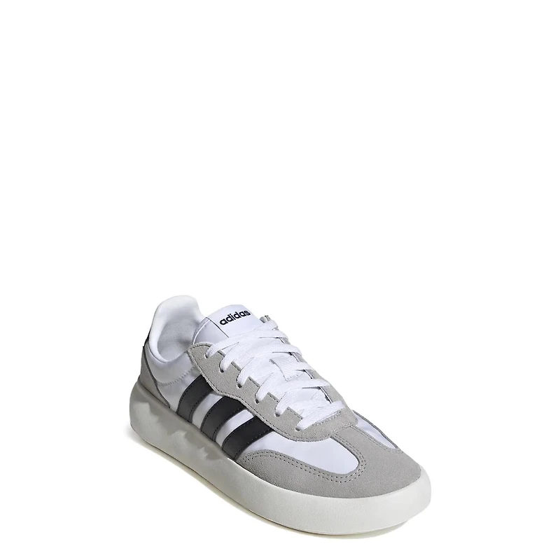Unleash a retro vibe with these girl’s Adidas Barreda Decode cloud white/matte silver/grey one sneakers. Made of premium suede and durable nylon made in part with recycled materials, these tennis-inspired shoes have a round classic T-Toe, lace-up closure, textile lining, and 3-Stripes detail at the side for an iconic sporty vibe. Features include breathable textile lining, and a durable rubber cupsole for enhanced comfort and a contemporary look.