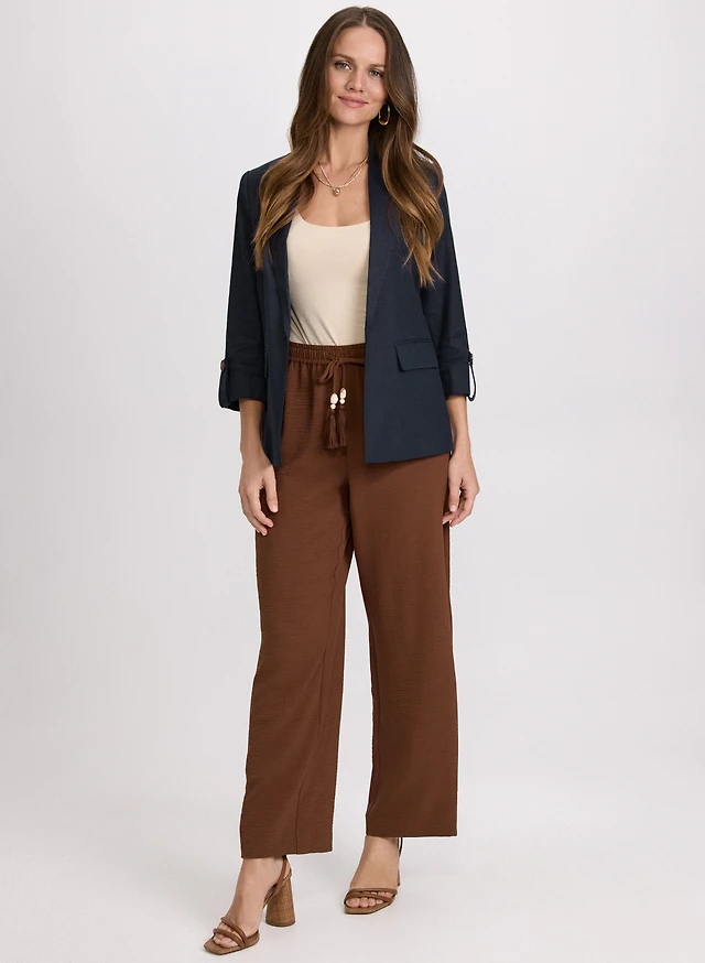 Linen-Blend Blazer & Pull-On Slim-Leg Pants