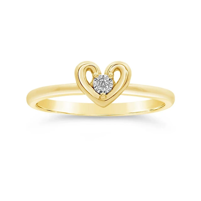 10K Yellow Gold 0.10CTW Diamond Heart Promise Ring