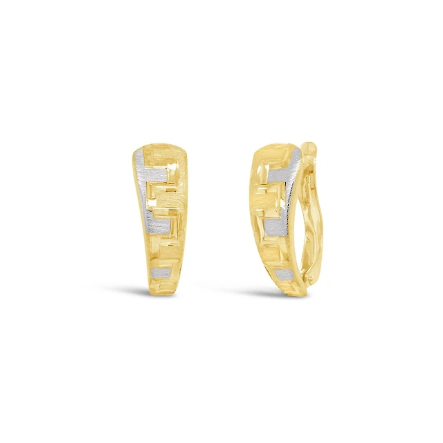 10K Yellow & White Gold Diamond Cut Hoop Earring