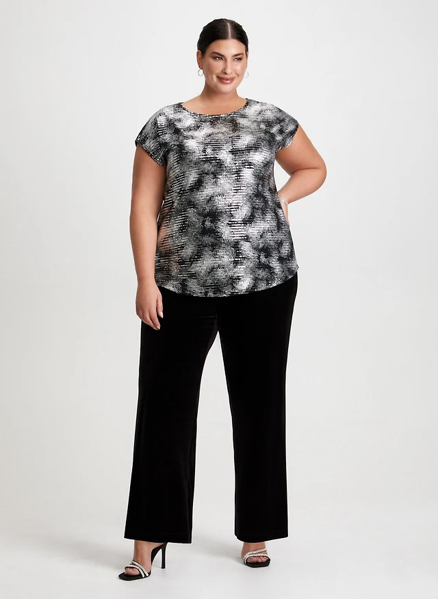 Metallic Print Top & Velvet Pants