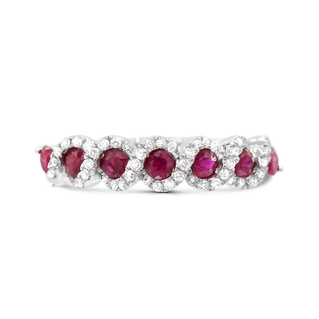 10K White Gold Ruby & Diamond Halo Earrings