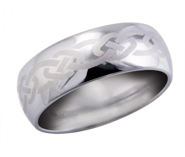 Previously Owned - Vera Wang Love Collection Men's 0.07 CT. Square Diamond Centre Groove Wedding Band in 14K White Gold