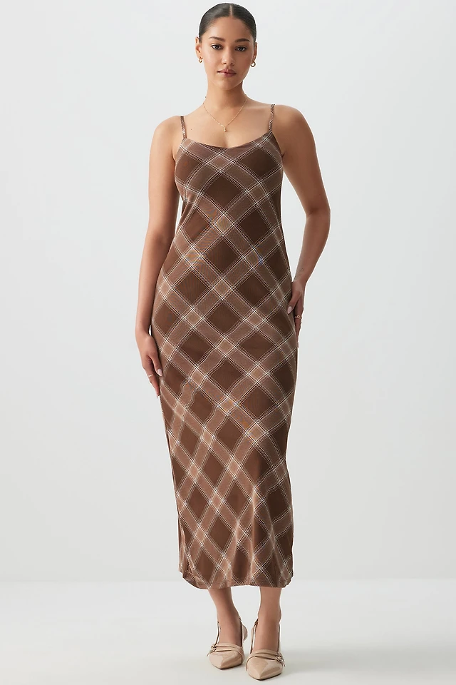 Ardene V-Neck Maxi Mesh Dress in Cognac | Size | Polyester/Spandex