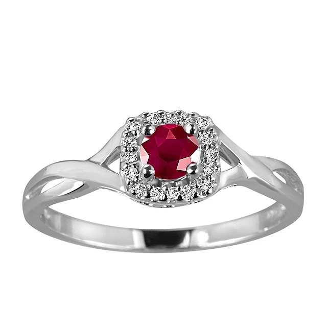 7.0mm Cushion-Cut Lab-Created Ruby and White Sapphire Frame Pendant and Ring Set in 10K Gold