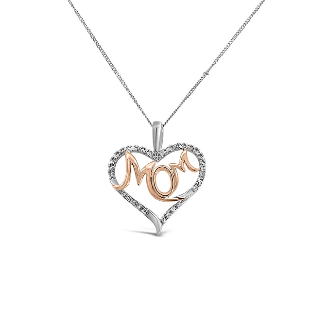 Mom Pendant with .10 Carat TW of Diamonds in 10kt White and Yellow Gold with Chain