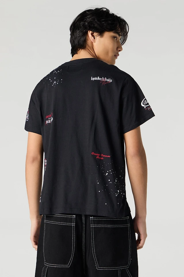 T-shirt délavé avec poche plaquée à imprimé URBN