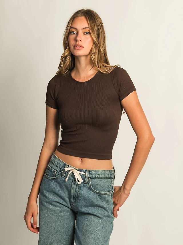 HARLOW RIBBED SEAMLESS TEE - BURGUNDY