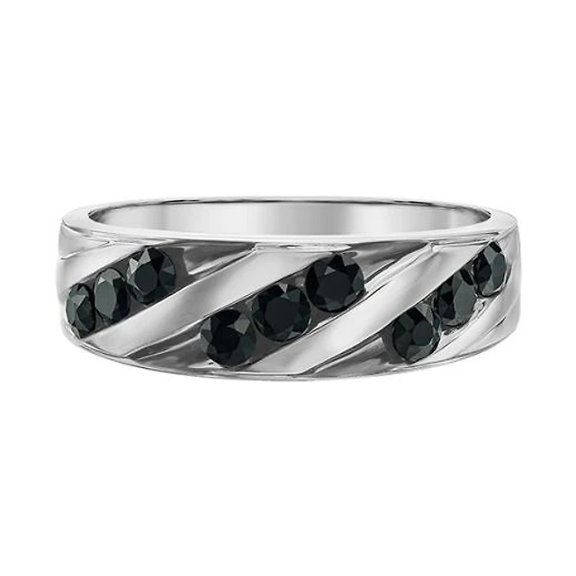 Sterling Silver Black Diamond Men's 0.50CTW Wedding Band