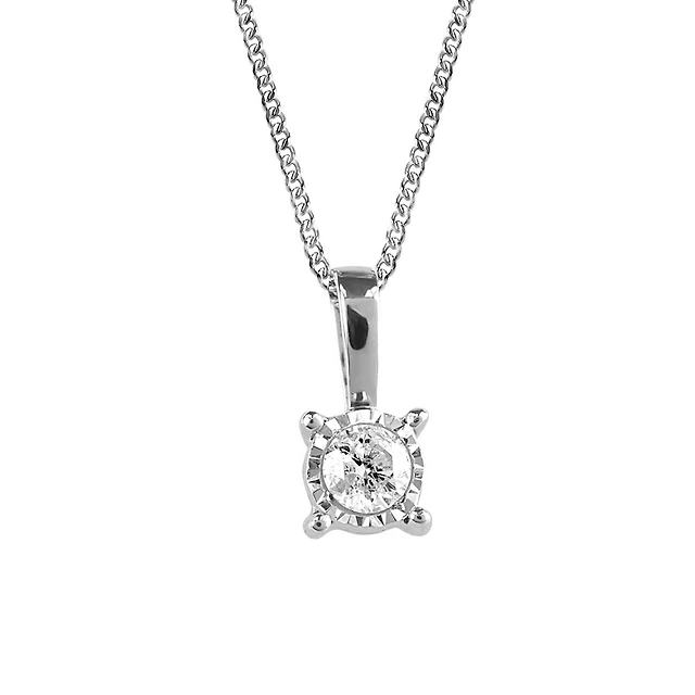 Previously Owned - 0.20 CT. Diamond Solitaire Tension Pendant in 14K White Gold (I/I2) - 17''