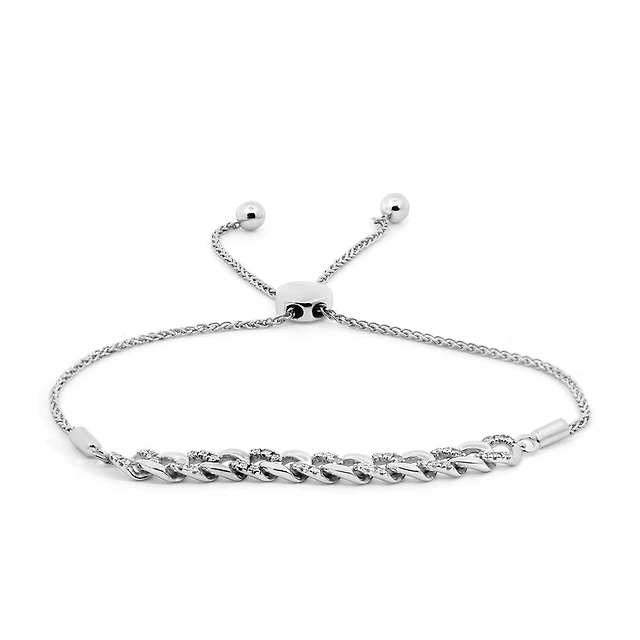 0.12 CT. T.W. Black and White Diamond Paper Clip Link Bolo Bracelet in Sterling Silver – 9.5"