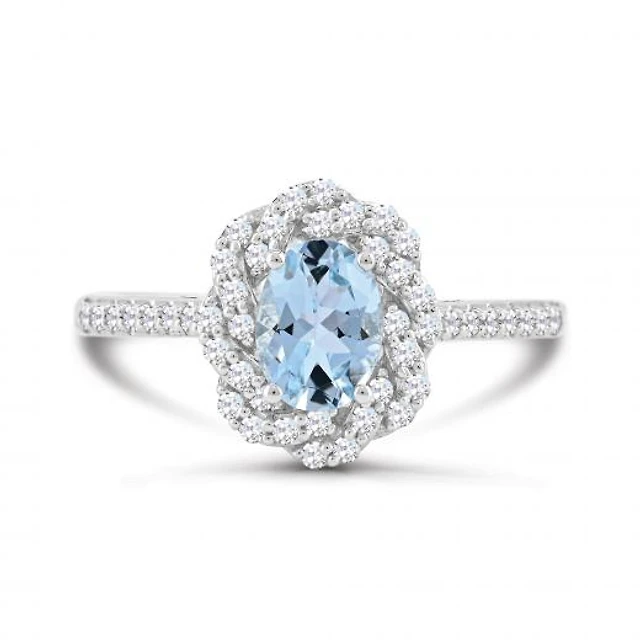 10K White Gold Aquamarine and White Sapphire Ring