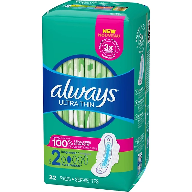 Always Ultra Thin Pads Size 2 Long Absorbency Unscented without Wings