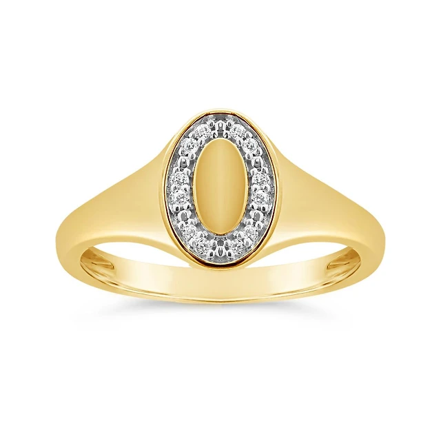 Charmables 10K Yellow Gold Diamond Oval Shaped Signet Ring
