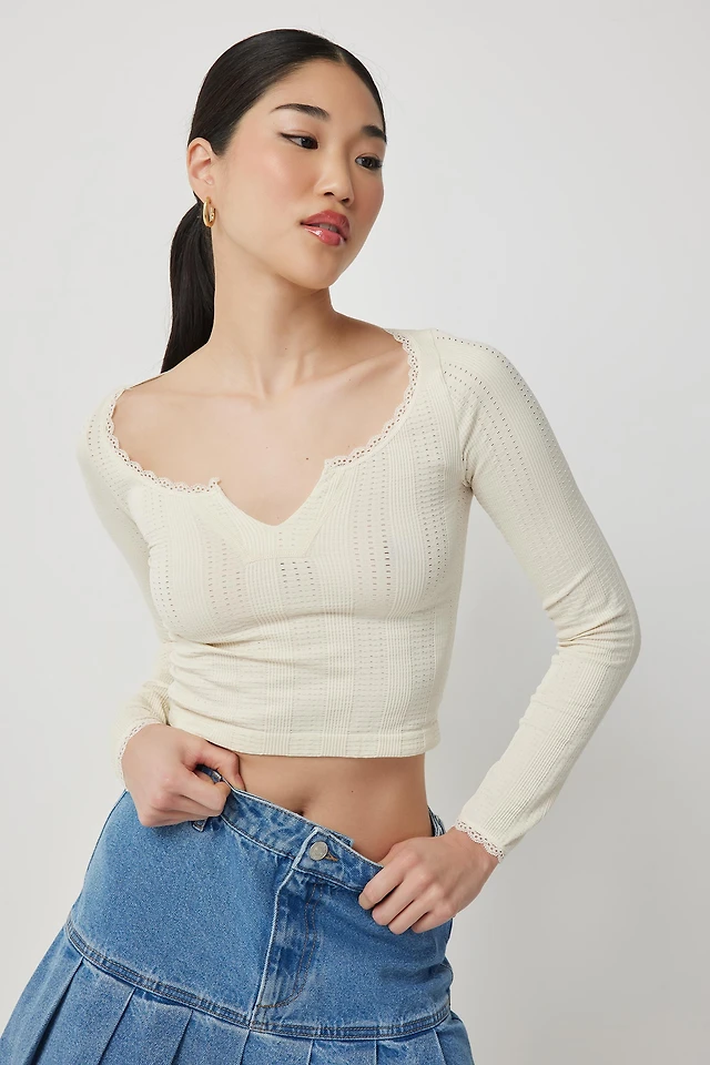 Ardene Long Sleeve Mesh Top with Bustier Seams in White | Size | Polyester/Elastane